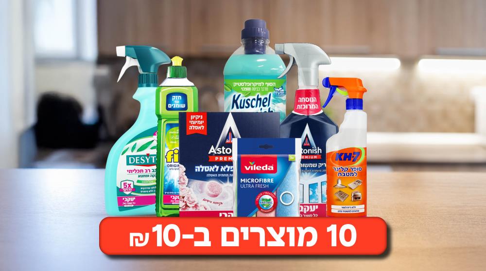 אסטוניש פלא אקונומיקה | אסטוניש מבריק שמשות | דזיטול מחטא בגדים 0.5 ל' | דזיטול רסס נגב | אסטוניש טבליות אסלה ורדים | KH7 סופר קלינר | 3 מטליות מיקרופייבר | מרכך כביסה מפנק | נוזל כלים מרוכז ירוק | אסטוניש ג׳ל אסלה כחול