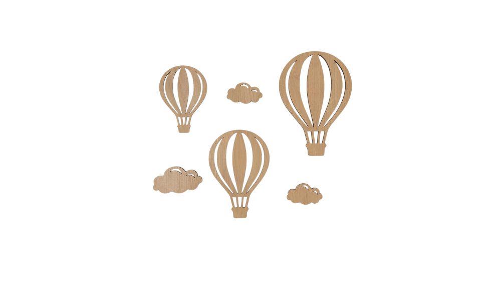 סט כולל 3 כדורים פורחים ו3 עננים מעץ עם ציפוי פורמייקה, כוללים דבק דוצצדי להדבקה פשוטה לקיר
